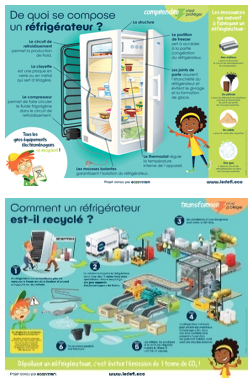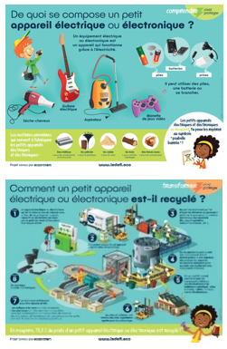 Format 60*80 cm / recto-versoRecto : les matériaux qui composent les petits appareilsVerso : le process de dépollution et de recyclage